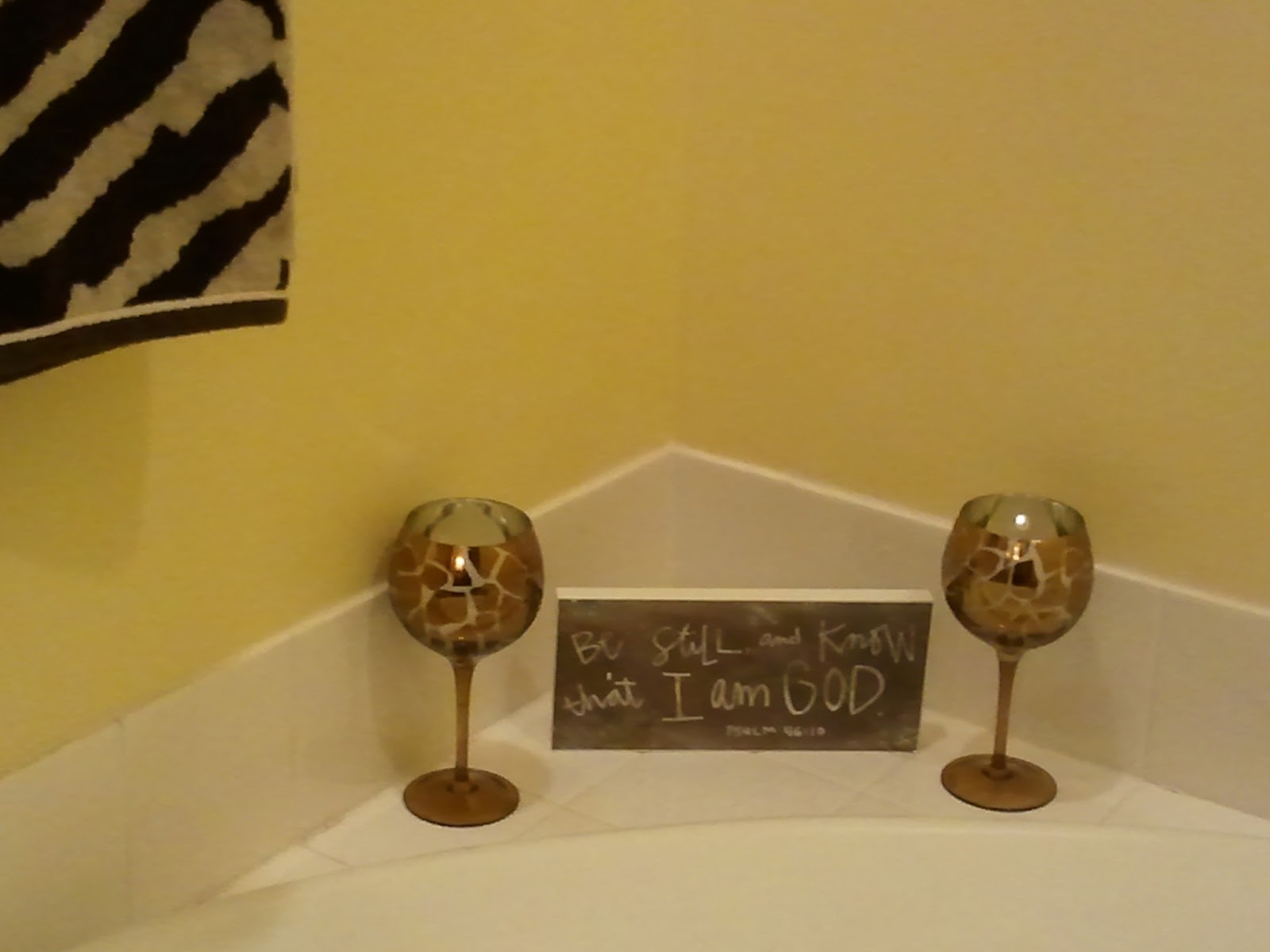 After supper we all 3 sat in the living room and talked...just like old times. Then I opened gifts from my daughter. Her gift selections were perfect. She gave me a frog flag, sunflower plates and giraffe pattern candle holders. I love frogs. No,of course not real ones!! But they are cute in pictures, etc. I also try to change my small flag by the mailbox frequently. I have decorated my kitchen with sunflowers. They seem so bright and cheery. I have just started decorating in my bathroom with giraffe print.